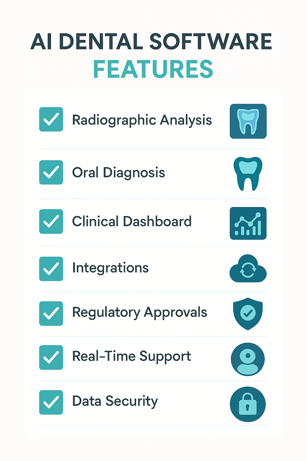 While evaluating the best AI dental software for your clinic, look for these key features.
