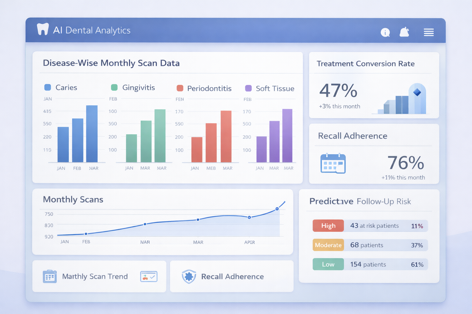 Regular analytics looks at past events. Dental AI goes further by spotting trends in diseases, appointments, and how patients act. It gives clinics a clearer idea of what might happen soon helping them step in sooner rather than just reacting afterward.