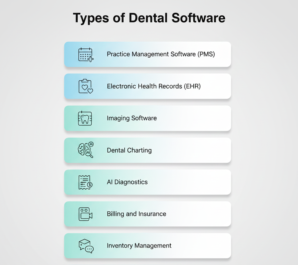Dental software is no longer a convenience, but it is a necessity. It assists clinics in their routine and enhances patient care, to the extent of diagnostic AI. The most popular ones are Pearl, Overjet, VideaHealth, Denti.AI and 3Shape, scano AI