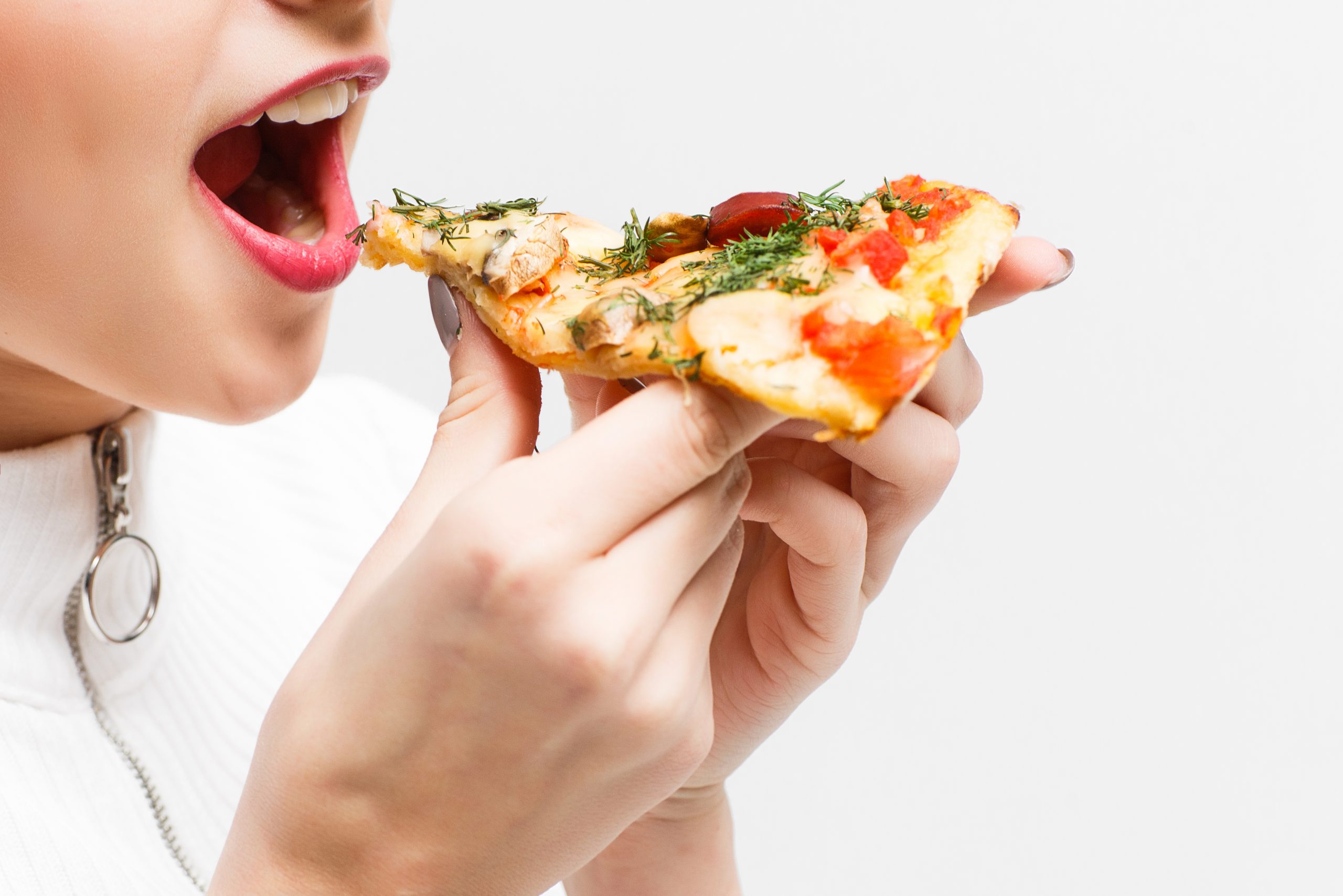 Eating a hot pizza could burn the roof of your mouth. The melted cheese sticks to the roof of your mouth burning your sift tissues. Hence always allow the pizza to cool a little before taking the bite.